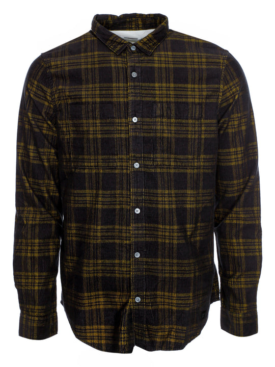 Cord-Hemd mit durchgehender Knopfleiste und Perlmutt farbigen Knöpfen,Zwei aufgesetzte Brusttaschen,Leicht abgerundeter Saum,Normale Passform,Länge: Etwas länger als hüftlang,Schwarz-gelbes Muster
