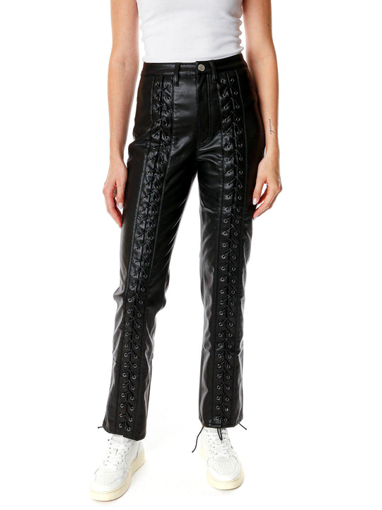 • Kunstlederhose mit Schnürung auf der Vorderseite der Beine