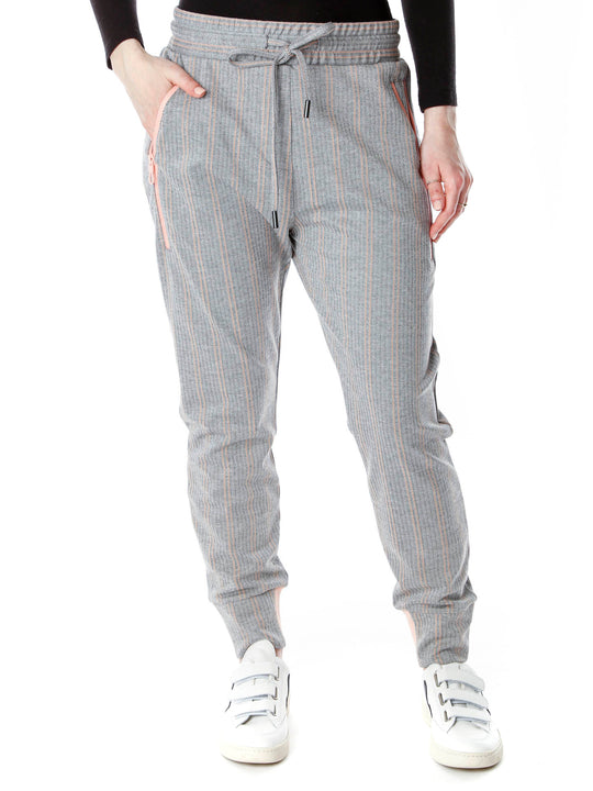 Figurbetonte Jogg-Pants mit feinem Muster und Farbakzenten all-over,Breiter Gummibund und mittlere Leibhöhe,Tunnelzug mit Kordel am Bund,Zwei Reißverschlusstaschen an den Seiten,Breiter elastischer Bund an den Beinabschlüssen mit Rippstrickanteil,Zwei angedeutete Gesäßtaschen,Kann lässig auf der Hüfte oder elegant am Taillenansatz getragen werden,Einheitslänge,Variiert je nach Körpergröße von knöchellang bis normaler Länge,Bei einer Körpergröße von 1.75m trägt unser Model die Gr. S