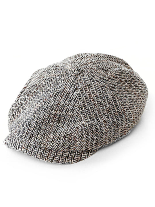 Schiebermütze im Fischgrät-Design,Sportiver Look,Klassisches achtteiliges Design,Farbvariante: grau-braun,Made in EU