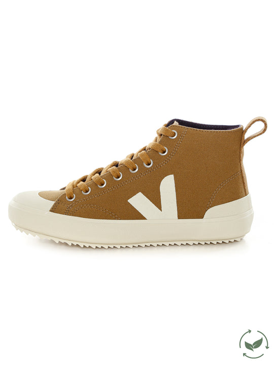 • Nachhaltige High-Top Canvas Sneaker mit Logo „V“ in Cremeweiß,Zugschlaufe an der Ferse,8-Loch Schnürung,Made in Brazil