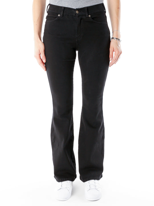 • Mittlere Leibhöhe,Reißverschluss,Metallknöpfe,Naht in Hosenfarbe,Ausgestelltes Bein,Bei einer Größe von 1.75 m trägt unser Model Gr. XS