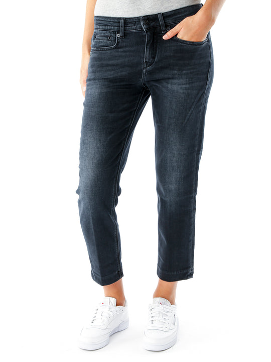• Boyfriend-Jeans mit niedriger Leibhöhe und verkürzter Beinlänge,Wird hüftig mit etwas tieferem Schritt getragen,Mit Knopf und Reißverschluss zu verschließen,3D-Faltendetails,Dunkelblauer Farbton leicht verwaschen mit Fade-Effekten,Leicht schmal zulaufender Beinverlauf,Abriebstellen an den Taschenkanten,Bei einer Größe von 1.75 m trägt unser Model Gr. 26/34