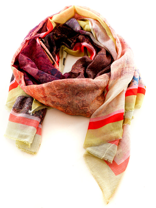 Leichter Schal mit Landschafts-Print,Leicht ausgefranst an den Enden,Maße (cm): 200 x 100 (L x B)