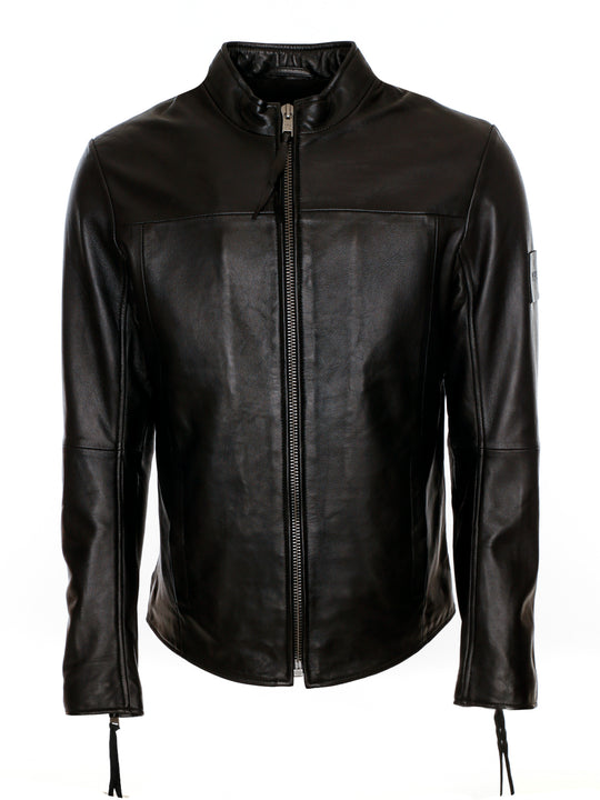 Lederjacke mit Stehkragen,Seitliche Eingrifftaschen mit Druckknopfverschluss,Durchgehender Reißverschluss,Druckknopfverschluss am Kragen,Tonales Logo-Patch am linken Oberarm,Tailungsnähte,Normale Passform,Länge: etwa Hüftlang
